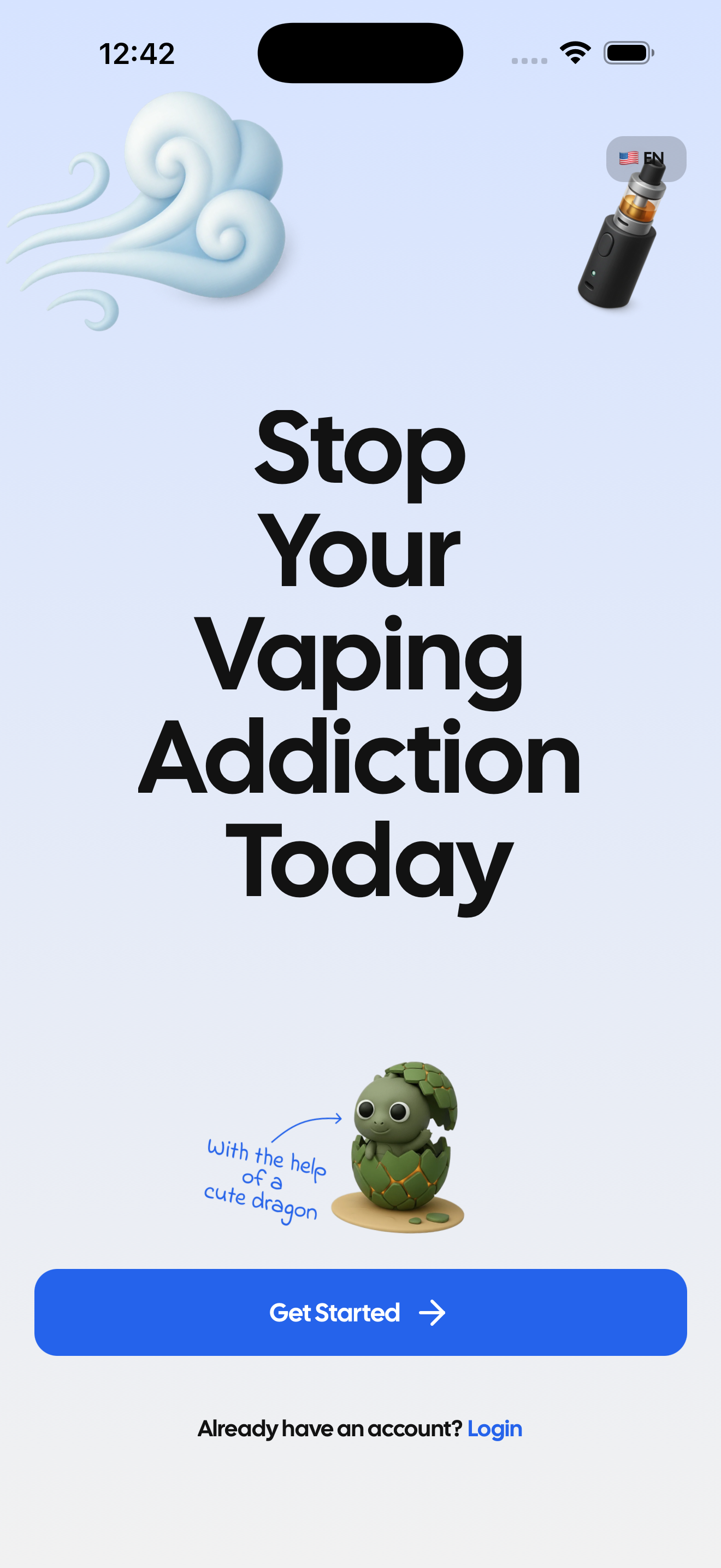- 🐉 Gamified Recovery – Your dragon evolves with every vape-free day.